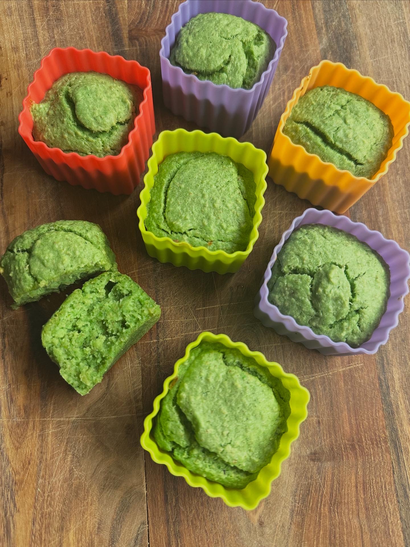 Hæld dejen i 6-7 silikoneforme (mine forme er forholdsvis små), og bag muffins i midten af ovnen i 15-20 min alt efter hvor gyldne de ønskes. Køl muffinsene ned i formene.