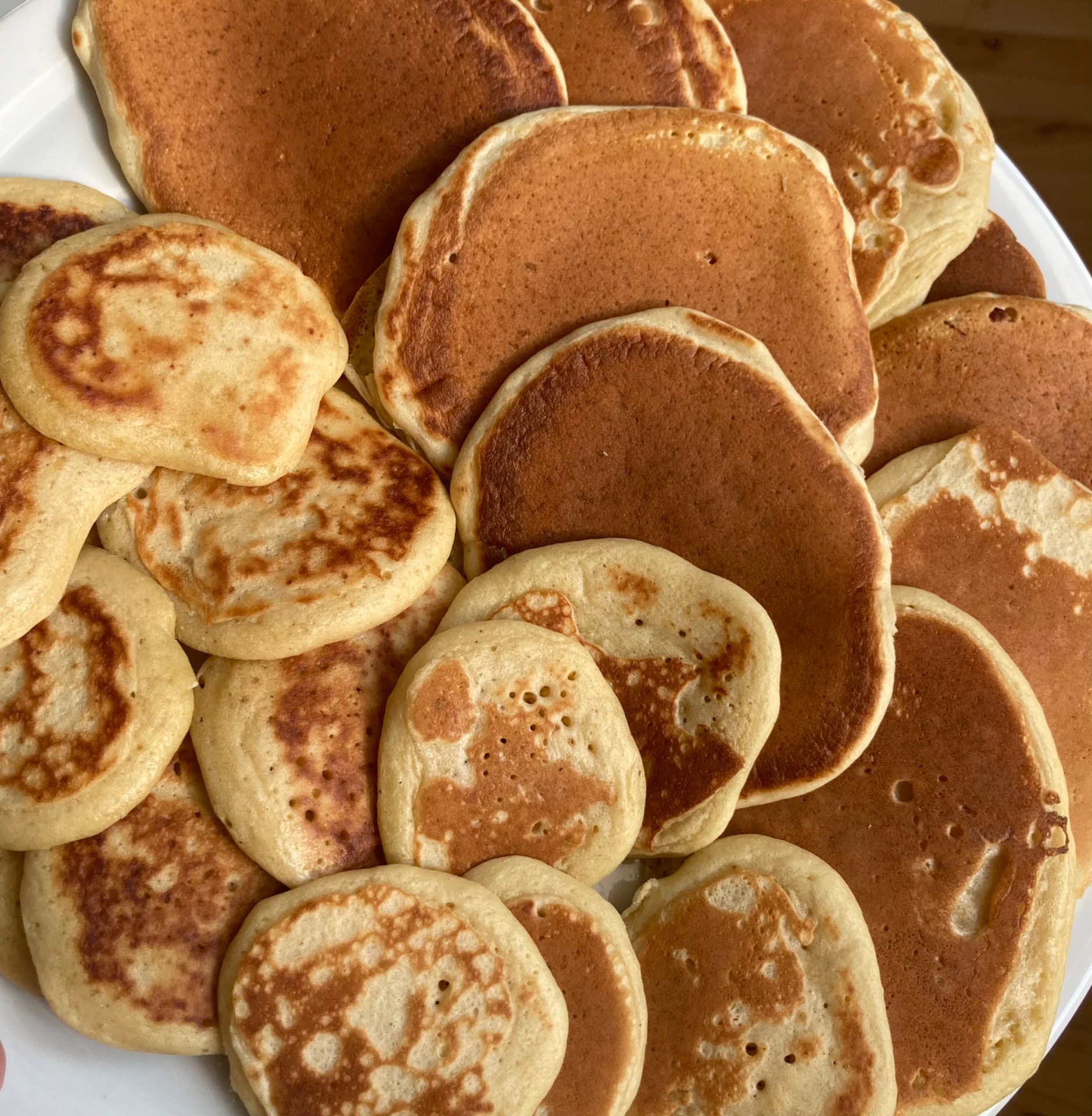 Amerikanske pandekager uden sukker, som er dejlig fluffy. Lav dem i den størrelse man ønsker